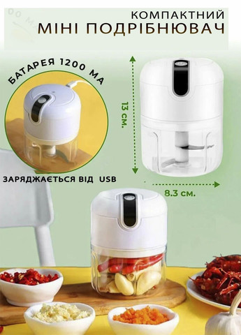 Кухонний подрібнювач допоможе вам виконувати невеликі та швидкі роботи, наприклад, подрібнювати часник, перець, овочі, зелень, горіхи тощо! Управління одним дотиком, що захищає ваші руки від травм. Просто помістіть продукти або інгредієнти в цей кухонний комбайн, закрийте кришку і натисніть кнопку подрібнювача, і ви отримаєте рівномірно подрібнений продукт за кілька секунд, що ідеально підходить для повсякденного приготування. Характеристики: Матеріал: пластик; Матеріал ножів: нержавіюча сталь; Об'єм: 100 мл; Вага: 360 г. Підзарядка: від мережі через USB Особливості: *Компактні розміри та стильний дизайн; *Управління за допомогою однієї кнопки; *Швидке подрібнення; *Триярусні гострі знімні ножі; *Підходить для подрібнення овочів, фруктів, горіхів, часнику, зелені тощо. Електричний мініподрібнювач, маленький млин AND999 - це зручний кухонний пристрій, що подрібнює різні типи продуктів в лічені секунди. Прилад невеликих розмірів поміститься в будь-якому куточку вашої кухні. Він завжди готовий до роботи і скоротить час приготування страв.