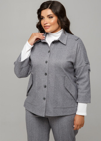 Жакет прямого силуету без виточок, виконаний з кашеміру. Тканина м'яка та тепла, міцна та зносостійка, добре тримає форму. Не колеться, тому не вимагає додаткової підкладочної тканини. Розтяжність тканини низька (1-2 см). По передній частині виконані кишені із клапаном. Комір відкладний на стійці. Лінія плеча м'якої форми, спущена, рукави втачні, одношовні, на манжетах. По лінії плеча - шльовки, по лінії вточування рукава - пат з ґудзиком. Застібка центральна на петлі та гудзики. Спинка подовжена, у бічних швах – розрізи. Без підкладки. Орієнтовні виміри по готовому виробу: р.50: ОГ – 106 см, ОТ – 106 см, ОС – 112 см; ширина рукава – 19 см; ширина манжети – 15 см; р.52: ОГ - 110 см, ОТ - 112 см, ОС - 116 см; ширина рукава – 20 см; ширина манжети – 15 см; р.54: ОГ - 114 см, ОТ - 118 см, ОС - 120 см; ширина рукава – 22 см; ширина манжети – 15 см; р.56: ОГ - 118 см, ОТ - 122 см, ОС - 124 см; ширина рукава – 22 см; ширина манжети – 17 см; р.58: ОГ - 122 см, ОТ - 126 см, ОС - 128 см; ширина рукава – 23 см; ширина манжети – 17 см; р.60: ОГ - 126 см, ОТ - 130 см, ОС - 132 см; ширина рукава – 23 см; ширина манжети – 17 см; Довжина рукава: 50, 52 – 61 см; нар. 54, 56 – 62 см; нар. 58, 60 – 64 см; Довжина виробу по спинці: 50, 52 – 71 см; р. 54, 56 – 75 см; р. 58, 60 – 80 см.