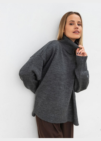 Светр вільного фасону зі спущеним плечем, невеликими розрізами з боків і горловиною-стійкою створює м який силует. Штани прямого крою з високою посадкою та еластичною талією забезпечують зручність і практичність.