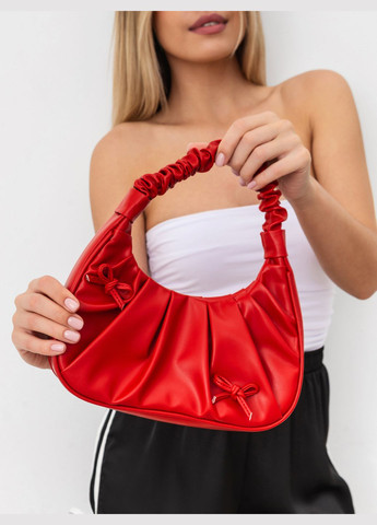 Жіночна сумка з ефектом драпірування. Модель доповнюється акцентними бантиками для надання елегантності. Сумочка добре тримає форму та застібається на кнопку-магніт. Усередині наявна текстильна підкладка та кишенька. Витончений варіант для образів із сукнями чи спідницями. Підкреслює вайб легкості та магнетизму. Висота 13 см, довжина 26 см, ширина 7 см