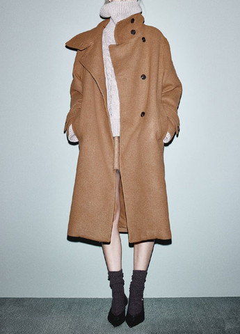 Класичне приталене пальто. Комір-стійка на потайних кнопках, потайна блискавка спереду та кокетка ззаду. Скошені бічні кишені на блискавках і дві внутрішні кишені. На підкладці. На розмір 42: плечі - 42 см, напівобхват грудей - 47 см, п/о талії - 45 см, п/о внизу - 47 см, довжина по спинці - 85 см, довжина рукава - 63 см. На розмір 50: плечі - 46 см, напівобхват грудей - 55 см, п/ по спинці - 85 см, довжина рукава - 84 см. На розмір 52: плечі - 48 см, напівобхват грудей - 57 см, п/о талії - 57 см, п/о внизу - 59 см, довжина по спинці - 87 см, довжина рукава - 64 см. У виробі можливе пошкодження.