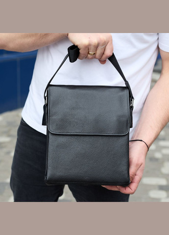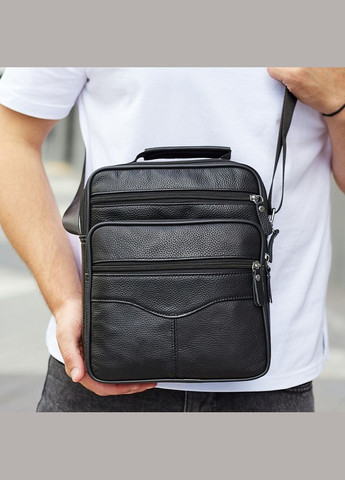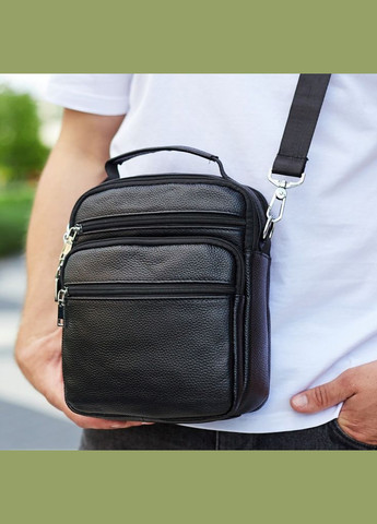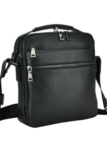 Чоловіча шкіряна сумка-барсетка через плече чорна Bexhill BX-09164 Характеристики: Матеріал: натуральна шкіра; Виробник: Туреччина; Колір: чорний; Розміри (ШхВхГ, см): 19 х 24 х 7.5. Структура: (2) два великі відділення на блискавці; (1) одна внутрішня кишеня на блискавці; (1) одна внутрішня відкрита кишеня; (3) три зовнішні кишені на блискавці. Опис: Лаконічна чоловіча сумка на плече виконана з високоякісної натуральної шкіри, м'якої на дотик. Виріб має два рівномірні основні відділення, всередині яких знаходяться бічна кишеня на блискавці, а також кишеня відкритого типу. Крім основних відділень, сумка має зовні також три додаткові відділення-кишені (з лицьової та тильної частини). Кожне відділення застібається за допомогою якісної фурнітури. Усередині сумка оброблена щільною підкладкою. Ремінець сумки щільний, регульований, знімний, а коротка зручна ручка в руці.