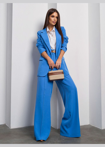 Костюм-SA-453. Чорний костюм з топ і вільні штани. Чорний костюм виготовлений з однотонного трикотажного рубчика з нашивкою. Прямі штани вільного крою з поясною гумкою та високою посадкою. Топ з довгими рукавами і напівкруглою горловиною має крой, що облягає, і нижнім манжетом. На рукавах отвори великих пальців. Виміри виробу: Напівобхват: Кофта: Груди: S (34), M (36), L (38), XL (40), Довжина виробу - 38, Рукав -71, Штани: Талія: S (30-36), M (32-38), L (34-40), XL (36-42), Стегна: S (44), M (46), L (48), XL (50), Довжина виробу - 108, Довжина по внутрішньому шва - 80, Тканина: Висока еластичність. Матеріал – Фактурний трикотаж. Склад тканини – 59% поліестер, 21% еластан, 20% бавовна
