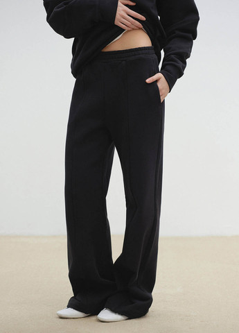 Штани прямого крою з мирного шовку у відтінку слонової кістки. Акцент — мереживні вставки з квітковим візерунком уздовж бокових швів. Тканина може мати вкраплення кольорових ниток — природна особливість мирного шовку, що виробляється без шкоди для шовкопрядів. Задня частина пояса — на еластичній тасьмі для комфортної посадки.