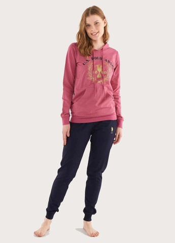 Бавовняна піжама жіноча U.S. Polo Assn. Кофта з логотипом та капюшоном, довгі рукави. Штани з вшитою гумкою, середня лінія талії. Виготовлено з високоякісних матеріалів.