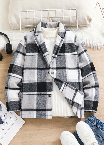 Куртка-сорочка у візерунок-клітинку для підлітків. Вона виготовлена з міцної тканини в жаккардову клітину і має зручний виріз із лацканами. Застібається на гудзики спереду. Підходить для різних випадків, включаючи школу, поїздки на роботу та повсякденний одяг. Звичайний дизайн рукава та лацкана забезпечує класичний вигляд. Ідеально підходить для весни, літа, осені та зими. Вільний крій, а поділ має стандартну форму. Тканина не тягнеться.