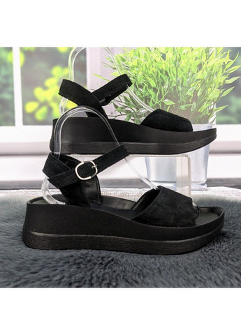 Босоніжки жіночі чорні замшеві на платформі середньої висоти Верх - м'яка натуральна замша Підкладка та устілка - еко-шкіра Підошва поліуретану. Висота підошви 2,5-4,5 см Фурнітура (застібка) металева. Підійде на ногу середньої повноти. Для вибору свого розміру дивіться розмірну сітку на дану модель: 37р - 23,8 см 38р - 24,5 см 39р - 25,2 см 40р - 25,8 см 41р - 26 ,5 см