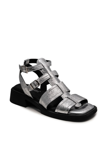 Стильні босоніжки із натуральної шкіри сріблястого кольору. Зручне та легке літнє взуття. Висока якість матеріалів та пошиття.