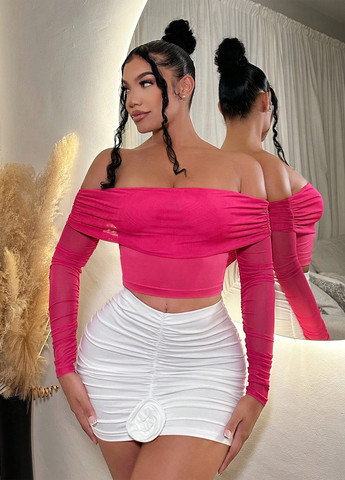 Топ із квітковим жаккардом має вінтажний дизайн із квітковим жаккардом. Він включає в себе деталі з відкритими плечима і розкльошений рукав, контрастні мереживні та оборчасті акценти. Цей виріб з асиметричним подолом. Тканина не тягнеться. Ідеально підходить для урочистих випадків та вихідного дня.