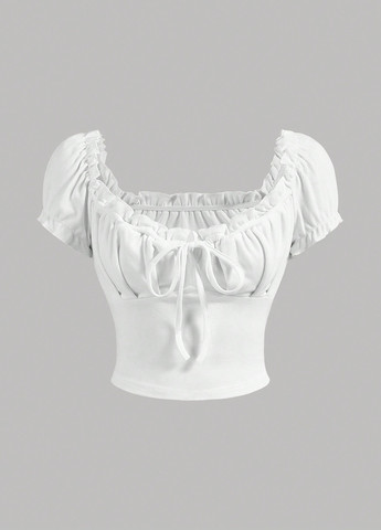 Колір Білий / Матеріал Поліестер / Візерунок Однотонний / Декор Оборки, Зав'язки / Стиль Кежуал