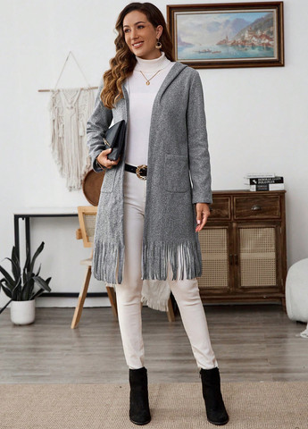 кешбек від 3 ₴-51%391 ₴675 ₴333 ₴Акція:2 дні, 05:47:40Безкоштовна доставка зКардиган SHEIN (325533749)LКолір Сірий / Візерунок Меланж / Склад 100% поліестер / Сезонність ДемісезонЖіночий повсякденний кардиган з капюшоном та бахромою.