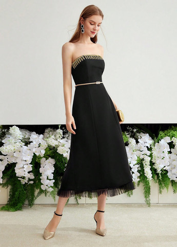 кешбек від 5 ₴-51%564 ₴974 ₴480 ₴Акція:2 дні, 05:47:40Безкоштовна доставка зSHEIN чорна коктейльна, вечірня сукня з відкритими плечима однотонна без рукава поліестер — виробництво КитайM•LМатеріал Поліестер / Колір Чорний / Фасон З відкритими плечима / Довжина виробу Міді та нижче коліна / Стиль Коктейльний, ВечірнійОсобливості нашої сукні преміум-класу: - Модель без бретельок - Модель без рукавів - Розкльошений низ - Висока талія для облягаючої посадки - Довжина міді - Тканий матеріал з нееластичного матеріалу - Елегантний та стильний.