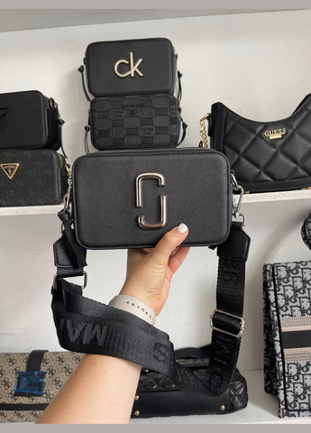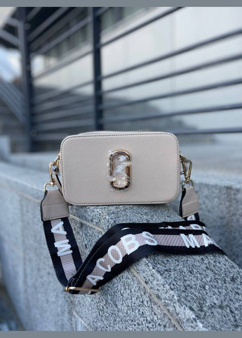 Сумка виготовлена з текстилю та еко шкіри, має одне відділення, яке застібається на дві блискавки. Підкладка текстильна. Ремінь текстильний з написом бренду Marc Jacobs на карабінах, шириною 4 см, регулюється по довжині від 70 см до 115 см. На звороті маленька відкрита кишенька. Фурнітура золотистого кольору.