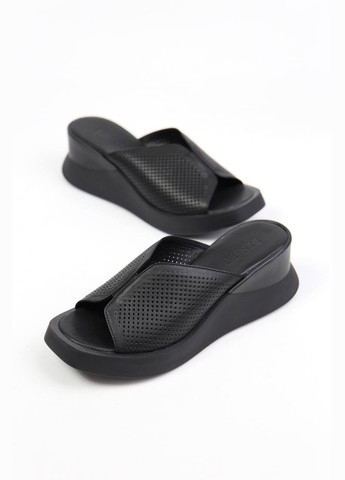 Колір Чорний / Склад верха Натуральна шкіра / Тип каблука Танкетка / Застібка Без застібки