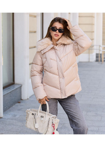 зимова парка прямого силуету, довжиною вище рівня коліна, з незнімним капюшоном. По краю капюшона і вздовж застібки незнімна галявина з натурального хутра White Fox. Рукав з манжетою, що застібається на ґудзик. На рівні грудей розташовані кишені. На рівні талії і по низу є регульована кулиска зі шнурком. Застібка на блискавку, прикрита планкою на кнопках. Утеплена парка силіконом. У виробі використовується дорога турецька фурнітура. На підкладці спинки фірмова сублімація щоб уникнути підробок торговельну марку