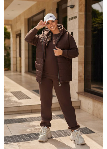 Костюм трійка Модель: 920 Розмір: 46-48; 50-52; 54-56 Тканина: тринитка утеплена на флісі( дуже тепла). Жилетка плащівка Лаке на підкладці із силіконом 150 Колір:чорний, шоколад,хакі,графіт,тіффані Заміри по готовому виробу Розмір: 46-48 Світшот ОГ-108 см, довжина-62 см Брюки ОБ-104 см, довжина-104 см. Жилет ОГ-112 см, довжина -64 см. Розмір 50-52 Світшот ОГ-118см, довжина-65 см Штани ОБ-112 см, довжина-104 см. Жилет ОГ-122 см, довжина -70 см. Розмір 54-56 Світшот ОГ-128 см, довжина -69 см. Штани ОБ-124 см;довжина 104см Жилет ОГ-132см,довжина-70 см