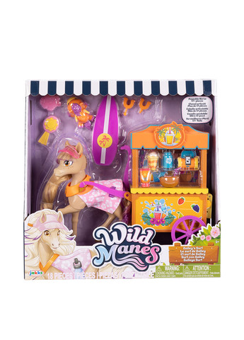 Відвідайте дивовижний світ Wild Manes, де ви зустрінете веселих, дружніх та милих конячок-подружок! Вони живуть у мальовничій країні Мейн Лейн, люблять різноманітні пригоди та веселощі. Кожна з них має свій неповторний стиль: колір гриви, хобі, захоплення і власний візок-магазинчик на колесах! Познайомтеся з кожною з них, станьте частиною їх команди і пірнайте у нескінченні веселощі! Вона любить проводити час на пляжі, займатися серфінгом, а також робити чай боба для відвідувачів. Пурпурні пасма в її гриві та хвостику означають її особливий зв'язок із природою і те, що вона дуже любить проводити час поза домом. У візку-магазині Бейлі знайдеться все необхідне для чудового відпочинку! Іграшка представлена у відкритій упаковці. Бейлі одягнена в квітчасту накидку з ремінцем для пляшки з водою та спортивний напівпрозорий козирок від сонця. Довгі гриву та хвостик можна розчесати милою гребінцем, укласти в стильну зачіску та прикрасити гарною шпилькою у вигляді квітки. Візок на рухомих колесах приєднується до конячки завдяки особливій упряжці, елементи якої можна легко від'єднати один від одного. На дошці для серфінгу Бейлі підкорює хвилі, а потім готує смачні коктейлі та освіжаючі напої у супроводі пляжної музики за допомогою міні-іграшкового програвача. Також вона має улюблену іграшку — фігурку у вигляді м'якої іграшки Пегаса. Всі аксесуари зручно зберігати всередині візка. Бейлі може тримати аксесуари для напоїв за допомогою фірмових кріплень у формі кінської підкови. Всього у конячки 7 точок артикуляції, завдяки чому її можна поставити у будь-яку позу. Голову конячки можна рухати вправо та вліво, і злегка вгору та вниз. Передні ніжки: одна ніжка згинається в трьох суглобах, а інша тільки в одному плечовому. Задні ніжки: обидві згинаються лише в одному суглобі. Великі промальовані очі з тоненькими брівками надають образу чарівності. Іграшка не лише дарує позитивні емоції дитині, а також: збагачує уяву; розвиває вміння грати; сприяє емоційному розвитку. У комплект входить: ігрова фігурка конячки з артикуляцією; одяг конячки; гребінець для волосся; шпилька для волосся; іграшковий міні-програвач; 2 іграшкові напої; дошка для серфінгу; пляшка для води; іграшковий тюбик із кремом для засмаги; візок на рухомих колесах; фігурка у вигляді м'якої іграшки поні. Дивіться цікавий мультсеріал про різноманітні пригоди коней на YouTube! Приєднуйтесь до незабутніх подорожей з дивовижними конячками на платформі Roblox! Тут ви знайдете захоплюючі квести, випробування, унікальний користувальницький контент і багато радості. Рекомендовано для дітей віком від 3 років. УВАГА: МОЖЛИВО ПОШКОДЖЕННЯ УПАКОВКИ. Розміри (см.): 9,5 х30, 2х30, 5.