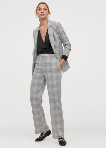 Колір Сірий / Матеріал Поліестер / Фасон Прямі / Висота посадки Висока талія / Візерунок Клітинка