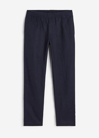 Колір Темно-синій / Матеріал Льон / Фасон Прямі / Висота посадки Середня талія / Візерунок Однотонний