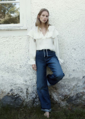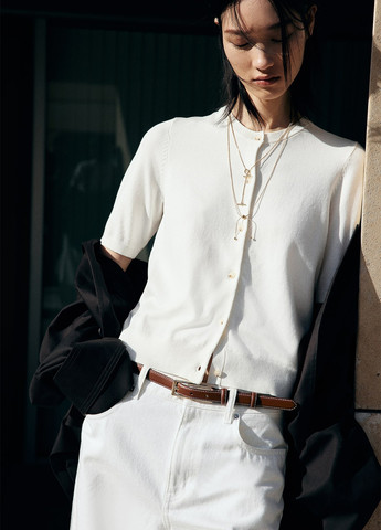 Укорочені штани із тканини зі стрілками, талія стандартної висоти, застібка на гачок та на блискавку. Скошені бічні кишені, несправжні прорізні кишені ззаду. Можливе пошкодження бірки. Для розміру 34: ПОТ-34 см, ПОБ-46 см, довжина-93 см.