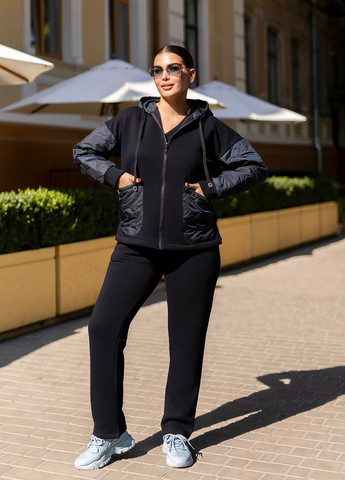 Теплий чоловічий спортивний костюм торгової марки Demma виготовлений з турецького трикотажу тринитка високої якості, виворітний бік на флісі, що робить цей костюм ще теплішим і комфортнішим. Полочка виконана зі стьобаної плащової тканини з утеплювачем (синтепон 150 щільності) високої якості. Завдяки високоякісним матеріалам, костюм не тільки приємний на дотик, а й дуже зносостійкий. У кофті кишені на блискавці, штани прямі. Розмір одягу на фото 52, зріст моделі 180 см, параметри моделі 100/92/102 см.