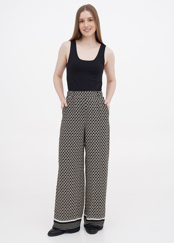 Штани з високою талією, довжиною до щиколотки, виготовлені з плетеної тканини з гумкою ззаду на поясі, складками та широкими, злегка звуженими штанинами із запресованими складками. Застібка на блискавку та прихований гачок спереду. Бічні кишені та фальшиві задні кишені. Внутрішня сторона штанини: довжина: 66,5 см (розмір 40).