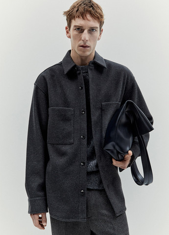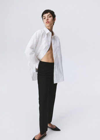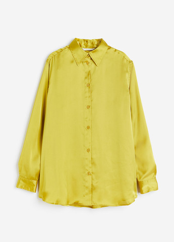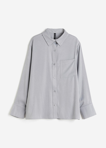 Досить довга сорочка зі злегка атласної тканини. Вільний крій з коміром, нагрудною кишенею та гудзиком спереду. Спущені плечі та довгі рукави з широкими манжетами на ґудзиках. Прямий низ з високим розрізом ззаду. Обхват грудей: 122,0 см (розмір M), рукав: довжина: 58,6 см (розмір M), спина: довжина: 69,2 см (розмір M), плече: ширина: 49,0 см (розмір M). Можливо пошкоджена бірка.