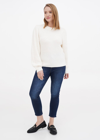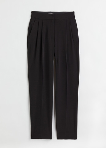 Штани з плетеного матеріалу. Модель із завищеною талією, складками спереду та застібкою на блискавці з гачком. Бічні кишені та накладні задні кишені. Звужені штанини, довжиною до щиколотки, з помітними складками.