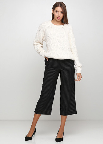 Елегантні брюки з плетеної тканини. Завищена талія, застібка на блискавку, потайний ґудзик і гачок. Похилі бічні кишені та прорізні кишені ззаду. Пряма штанина зі складками і притиснутими складками спереду і ззаду. Обхват талії: 79 см (розмір 40), внутрішня сторона штанини: довжина: 77,5 см (розмір 40).