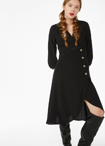 двобортне приталене напівпальто з високим коміром. Декоративний рядок, а також хлястики знизу на рукавах та ззаду на спині. Бічні кишені. Атласна підкладка