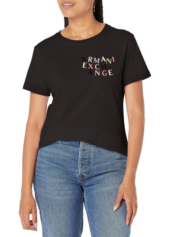 Жіноча футболка Armani Exchange. Стильна футболка з брендом логотип спереду. М'яка бавовняна тканина. Круглий виріз, короткі рукави. Прямий силует. Відмінна якість.
