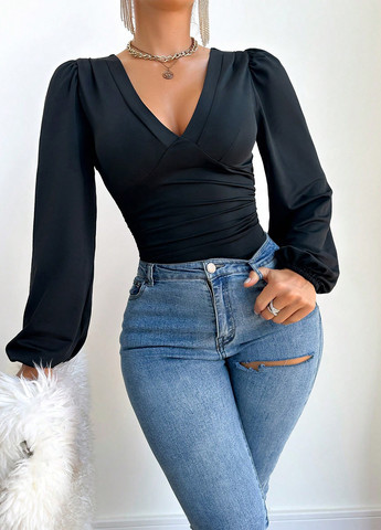 кешбек від 5 ₴-66%564 ₴1 408 ₴480 ₴Акція:06:34:31Безкоштовна доставка зSHEIN блуза однотонна чорна кежуал поліестер виробництво — КитайSКолір Чорний / Стиль Кежуал / Візерунок Однотонний / Фасон рукава Ліхтарик