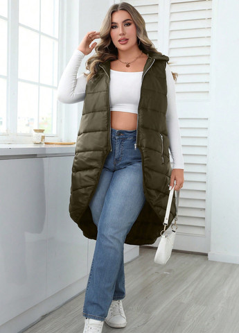 Жіноча зимова парка SHEIN EZwear великих розмірів. Цей парка зігріє в холодну погоду. Вона має каптур і розкльошений поділ. Парка застібається на блискавку та має кишені. Підкладка виготовлена з поліестеру. Підходить для температури нижче 10°C (50°F). Парка виготовлена з тканого матеріалу з нееластичною еластичністю.
