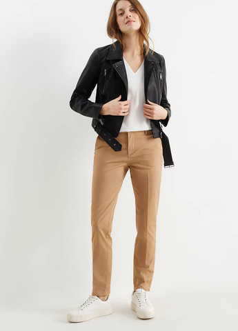 Штани довжиною до щиколотки із тканого матеріалу. Талія стандартної висоти, пояс на потайній гумці, хибна ширинка та діагональні бічні кишені. Пошкодження бірки.