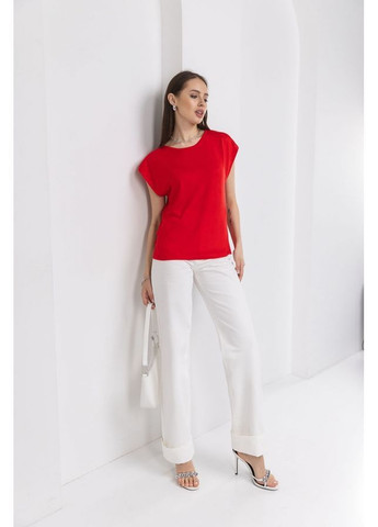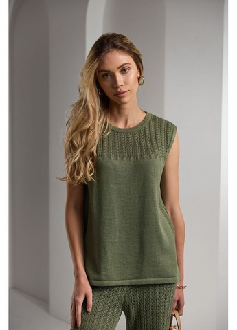 Оригінальний яскравий жіночий комплект, що складається з кардигану, топу та штанів, виконаний з натурального трикотажного полотна. Вироби можуть одягатися як разом, так і окремо в інших поєднаннях. Довжина штанів по боковому шву 108 см, ширина у стегнах 43 - 46 см. Довжина кардигану 39 см, ширина 40 - 42 см. Довжина топу 31 см, ширина 34 - 36 см.