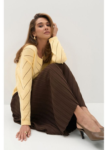 Джемпер виконаний з натуральної вовняної пряжі преміум якості. Оздоблений трендовим малюнком в горизонтальну смужку. Тонкий та, водночас, теплий виріб. Довжина 58 - 61 см (+- 2 см). Ширина у спокійному нерозтягнутому стані 48 - 53 см., у розтягнутому стані 58 - 63 см. Довжина рукава 52 - 51 см + ширина плеча 14,5 - 17,5 см.