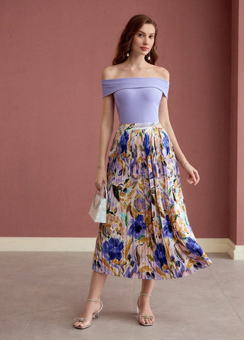Колір Ліловий / Фасон Плісе / Висота посадки Висока талія / Довжина виробу Міді та нижче коліна / Матеріал Поліестер