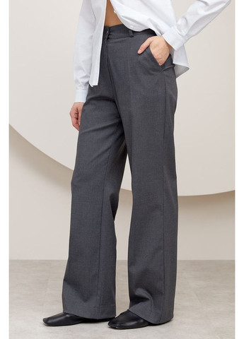 Довгі штани вільного силуету — зручна та стильна модель для будь-якого гардероба. Виріб має кишені з відрізним бочком і пояс із шльовками, що дозволяє носити штани з улюбленим ременем. Застібка виконана у вигляді гульфіка з потайною блискавкою. На задніх половинках розташовані виточки для кращої посадки по фігурі. Низ штанин акуратно оброблений швом у підгин із закритим зрізом, що додає виробу охайності та довговічності.