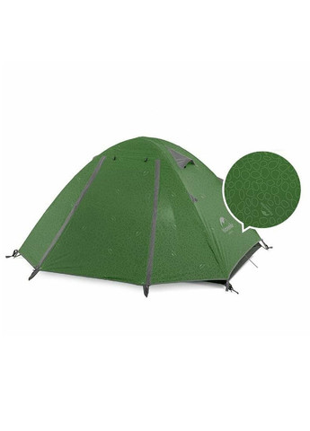 Намет розрахований на відпочинок чотирьох осіб. Простий в збірці, має двошарову конструкцію, простір перед дверима розширено навісом. Надійний захист від опадів, вітру, ультрафіолетових променів. Добре пропускає всередину повітря-перебувати в такому наметі буде затишно і комфортно. Форма-півсфера. Матеріали: поліестер 210 Т, тканина 150D Oxford, дихаюча сітка B3. Каркас виготовлений зі сплаву алюмінію 7001. У комплекті представлені також: 15 кілочок, 6 вітрових мотузок, дві жердини, сумка для зберігання аксесуарів. Характеристики: намет для туризму, активного відпочинку; форма-півсфера; місткість: чотири людини; двошарова конструкція; склад тенту: поліестер 210 Т, водонепроникність – 2000 міліметрів водяного стовпа; склад внутрішньої частини: дихаюча сітка B3, поліефірна тканина 210 Т /2000 мм. в. ст.; склад дна: тканинна 150D Oxford; каркас з алюмінієвого сплаву; габарити моделі: 210*(210+55)*130 сантиметрів; габарити упаковки: 48 * 18 сантиметрів.