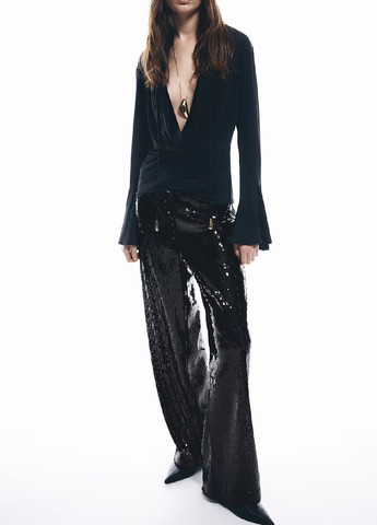 Штани з сітки з паєтками. Висока талія з виточками ззаду та застібка на потайний гудзик та гачок. Підкладка із джерсі.