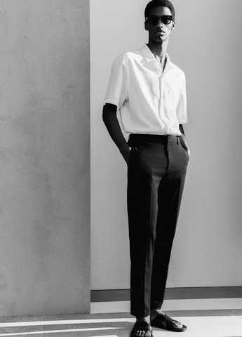 Довгий кардиган із м'якої пряжі з додаванням вовни. М'які лінії з низькими плечима. Широкі довгі рукави з вузькими манжетами. Ребриста кромка внизу рукава і внизу. Без кнопок.