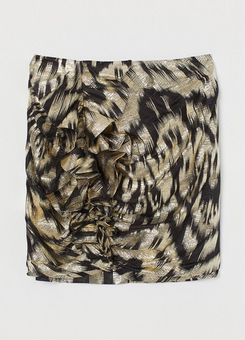 Коротка спідниця із трикотажу з мерехтливим малюнком. Висока талія, прихована блискавка ззаду та оборки спереду. Підкладка. Залежно від якості монітора, відтінок товару може відрізнятися. Можливе пошкодження бірки.