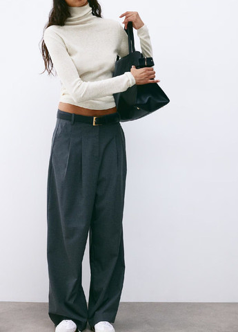 Довгий светр із суміші вовни та мохера. Модель виконана в стилі панчішної в'язки з круглим вирізом горловини та вільним кроєм. Светр виготовлений з 45% вовни мохерової, сертифікованої RMS, і 17% вовни, сертифікованої RWS (TE-00047206). Продукція, сертифікована відповідно до Стандарту відповідальної вовни (RWS) та Стандарту відповідального мохера (RMS), містить волокна вовни та мохера з ферм, які пройшли незалежну сертифікацію відповідно до стандартів захисту тварин та землекористування.