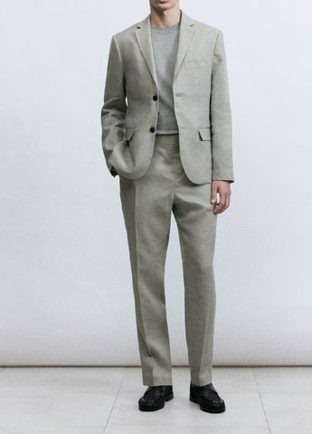 Однобортний піджак з повітряного льону з фігурними лацканами, декоративною петлею для гудзиків, нагрудною кишенею, передніми кишенями з клапанами та двома внутрішніми кишенями. Два ґудзики спереду, декоративні гудзики на рукавах та подвійний розріз ззаду. Slim fit – це крій, який адаптується до контурів тіла та створює стрункий силует. На підкладці. Льон - дихаючий матеріал, який виглядає красиво як після прасування, так і після складок, а згодом стає м'якшим.