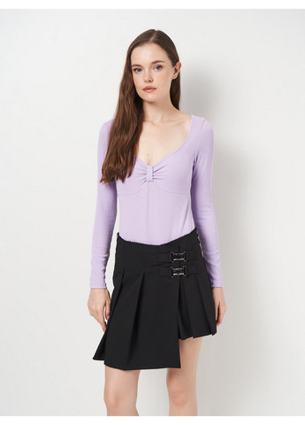 Трикутний ліф бікіні із зубчастими краями, вирізаними лазером, і злегка ущільненими чашечками зі знімними подушечками. Вузькі регульовані бретелі, які можна закріпити у різний спосіб, і застібка ззаду на металевий гачок. Можливе пошкодження бірки