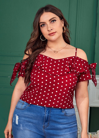Колір Бордовий / Стиль Кежуал / Візерунок Горошок / Фасон рукава З відкритими плечима