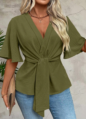 Блуза SHEIN Clasi Plus з відкритими плечима, оздобленням воланами та зав'язками збоку пропонує вигідний стандартний крій. Відрізняється витонченим оздобленням воланами та зав'язаними бічними деталями. Він включає стандартний рукав і злегка еластичну тканину. Дизайн включає виріз на тонких бретельках.