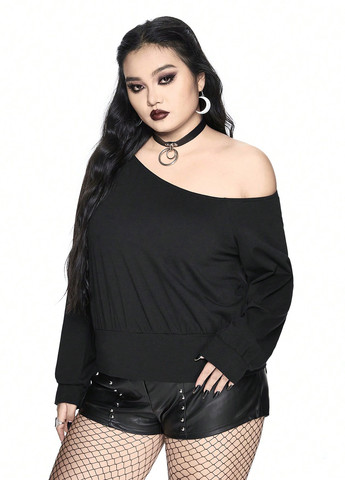 Ця модель з довгими рукавами має асиметричний виріз та дизайн з відкритим плечем. Вона включає вишивку зірок та місячних метеликів, має вільний крій та щільний поділ. Виготовлена із тканини середньої еластичності.