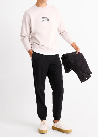 Вільні спортивні штани Monki від H&M із заниженою талією та бочкоподібним силуетом. Еластичний пояс з внутрішнім шнурком дозволяє регулювати посадку. Злегка зміщена вперед окантовка по бокових швах підкреслює фігуру, а виточки і стібки на колінах, а також акуратно відвороти на підгин створюють чистий і елегантний образ.