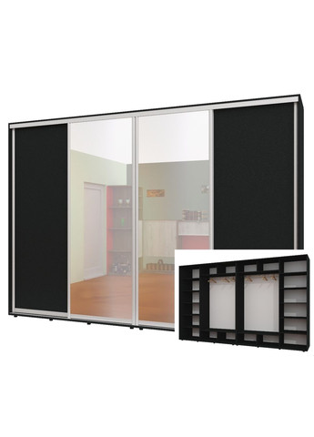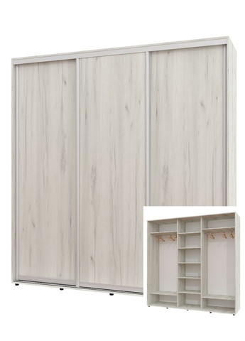 ТОВАР ПІД ЗАМОВЛЕННЯ. ТЕРМІН ВИГОТОВЛЕННЯ 2 ТИЖНІ • Корпус і фасад виробу виготовлений із ламінованого ДСП завтовшки 16 мм. • Крайка зовнішніх деталей 2 мм, полиці, а також ящики 0.5 мм. Алюмінієвий профіль. • Шафи спроєктовані так, щоб забезпечити міцну, безпечну та стійку конструкцію. Компоненти розсувної системи та фурнітура проходять перевірку на міцність і довговічність. • Завдяки універсальній заводській присадці під час встановлення ви можете змінити розташування внутрішнього наповнення — змінити його дзеркально. • Шафа встановлюється на регульовані ніжки, які дають змогу виставити шафу рівно. • У комплекті передбачені стоєві, дах, дно, внутрішнє наповнення (полиці, труби), напрямні, двері та комплект фурнітури. • Шафа відвантажується в розібраному вигляді заводській упаковці.